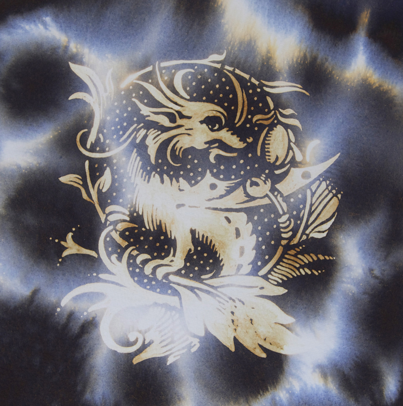 Quink black freeform blend onto 300gsm Saunders watercolour paper with bleach illustration.