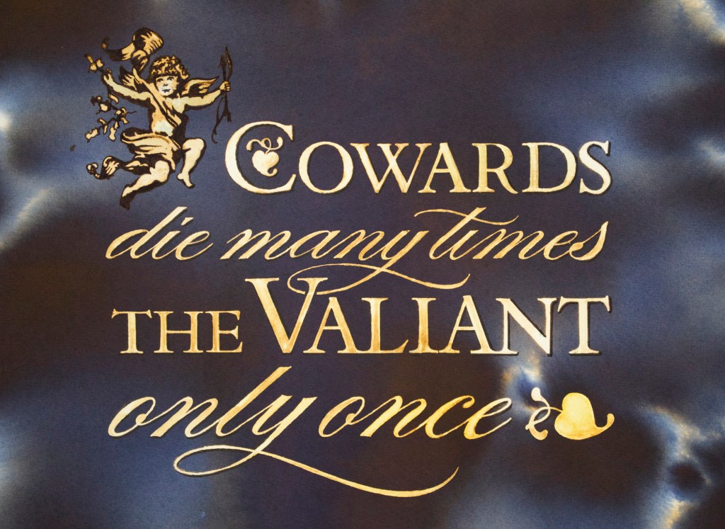 INK ART, lettering, PARKER, QUINK & BLEACH by Nick StewartOctober 16, 20148:18 amJuly 30, 2018 Cowards die many times, the Valiant only once Test piece. Share this: Click to share on X (Opens in new window) X Click to share on Facebook (Opens in new window) Facebook Like Loading... Related