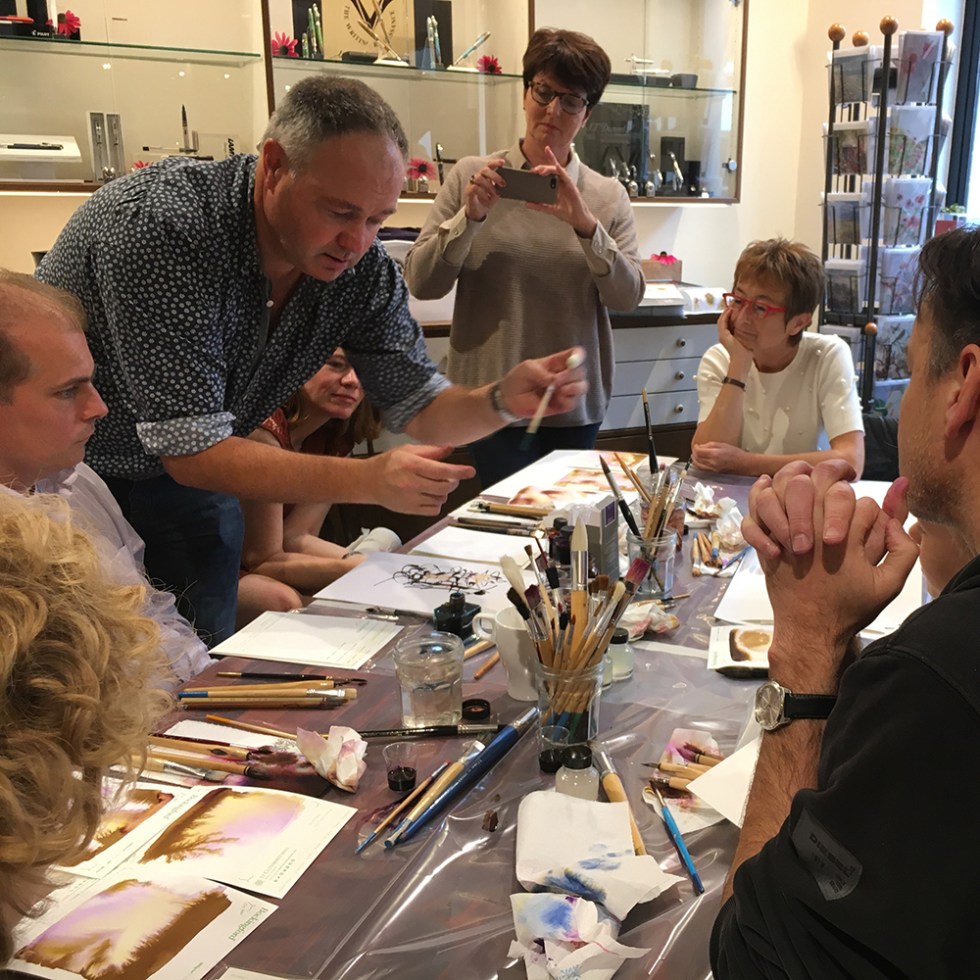 Saturday 23rd September was my first first proper ink and bleach workshop and an international one at that! Very kindly hosted by Catherine Van Hove at her gorgeous Sakura Fountain Pen Gallery in Diest, Belgium, with ink kindly supplied by Robert Oster.