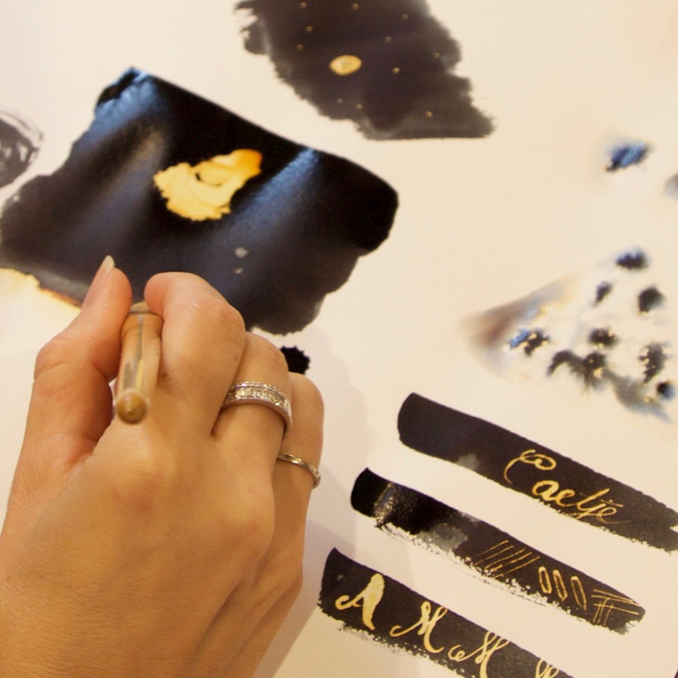 Once dry, they used their dip pens to add illustration and handwriting with the original Noodler’s Rome Burning Ink. Now that really is a lot from a little!