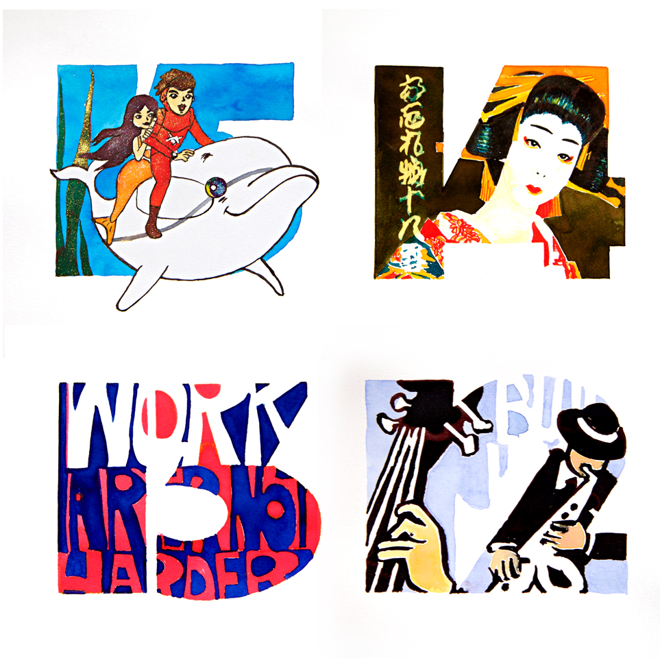 5. Led Zep – I have a very wide taste in music but at one time Led Zep were THE band for me. Based around a tour poster which I’ve re-worked to fit the shape, I used my CMYK fountain pen ink colours for the final artwork. Love that brown in the black!