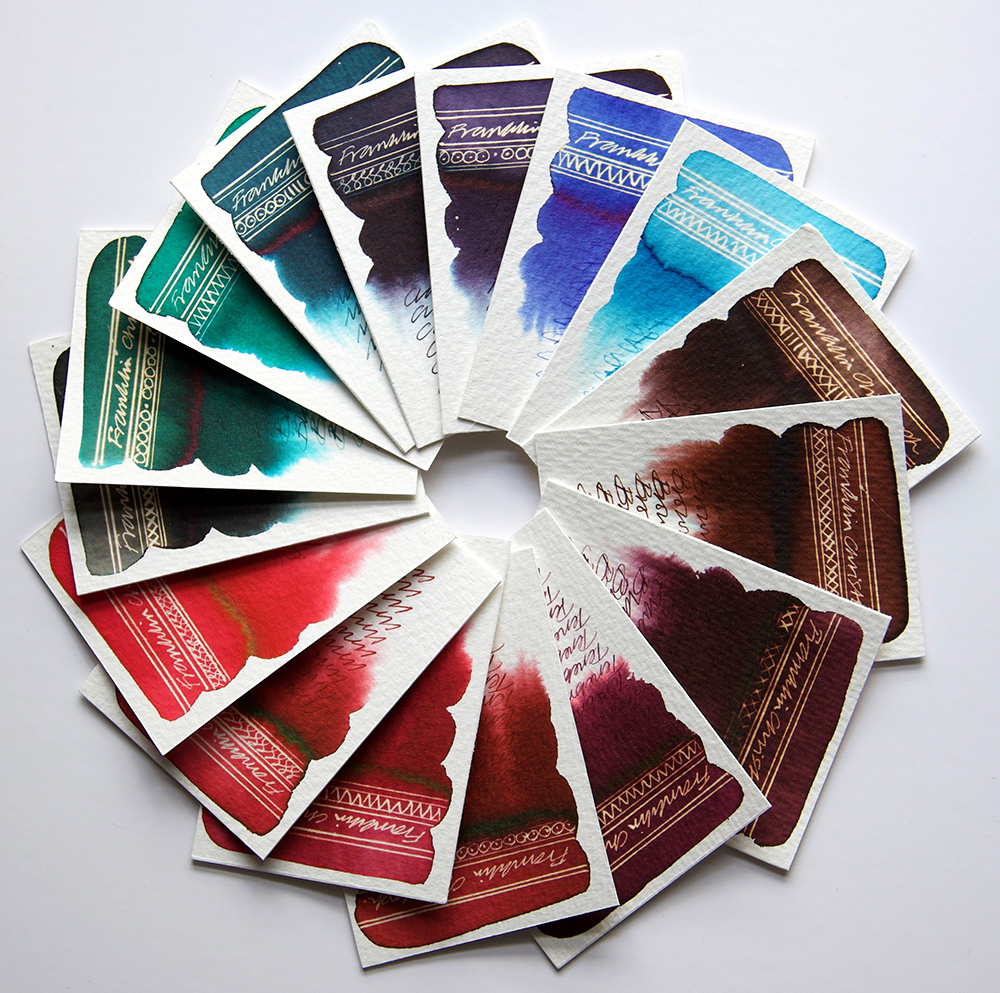 Franklin Christoph have been producing writing accessories in North Carolina since 2001. Here are 16 swatch tests from their current range: