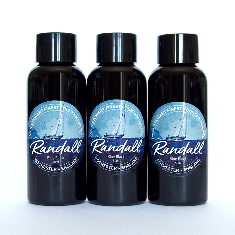 So after nearly 3 years of swatch testing and experimenting I have decided to take the Blue Black challenge and design my own ink. For some, taking an off-the-shelf colour and badging it with their own label is an obvious and easy thing to do. Having swatch tested hundreds of inks I can now spot these quite easily as each ink manufacturer has their own house style. But re-badging can be frustrating for enthusiasts who inadvertently can end up with two, three or more bottles of the same ink but with a different label. To that end, I can assure you that my Randall is absolutely unique.