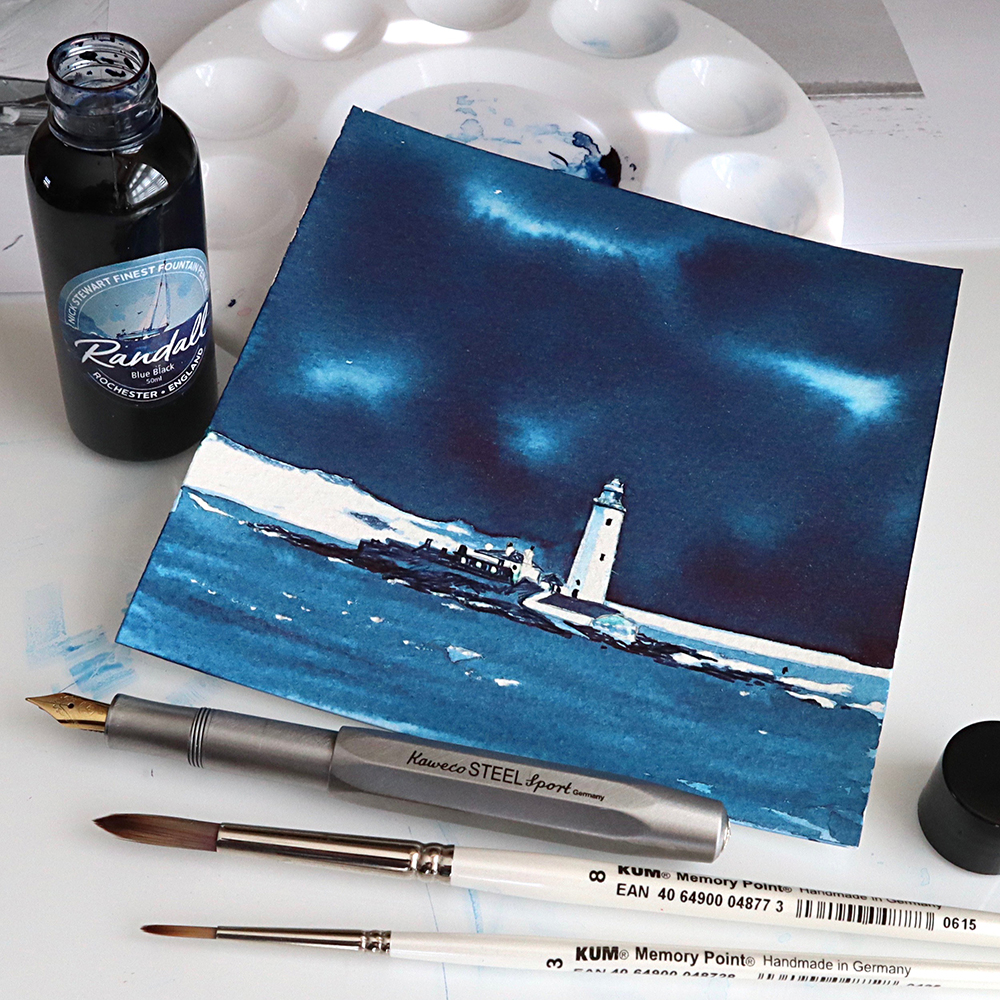 As a keen sailor and artist, there’s nothing quite like getting stuck into a marine painting. I knew when Randall Blue Black was created that it would be a very good writing ink, but what I didn’t appreciate at that time, was how magical it would be for marine painting too.