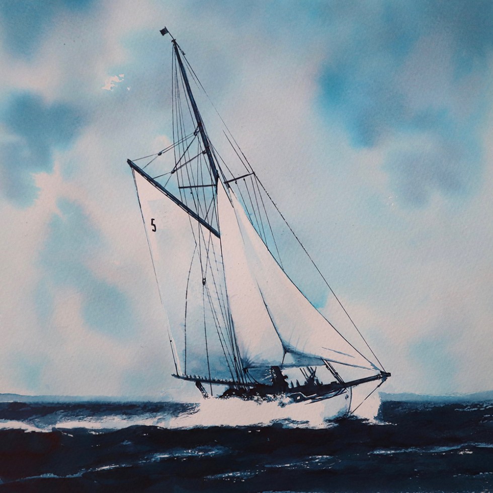 Close Hauled! Painted with Randall Blue Black Fountain Pen Ink using a KUM Memory Point 10 on Bockingford 140lb with line work using a Kaweco Stainless Steel Sport with an extra fine gold nib.