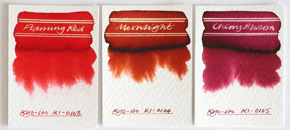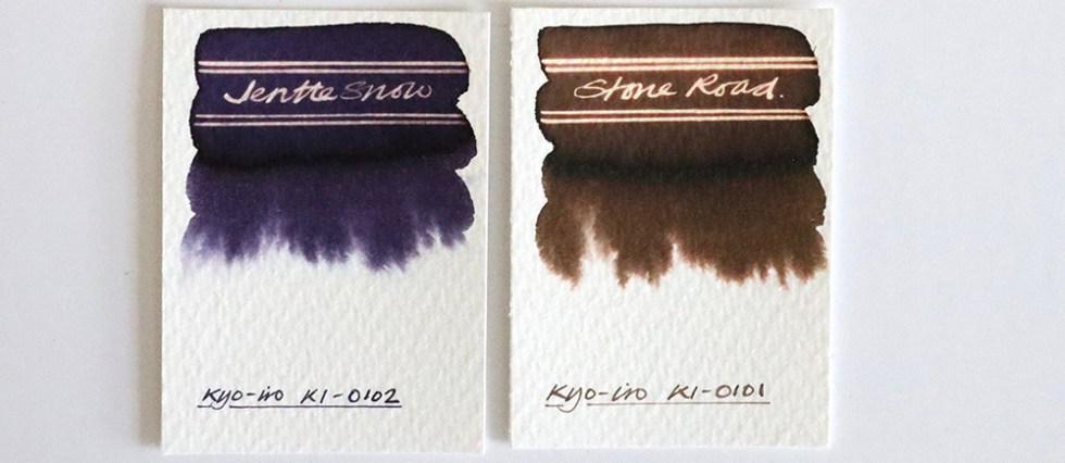 Stone Road of Gion (01) – A walnut brown named after the stone-paved streets of Kyoto’s Gion district, where you can still glimpse a traditional geisha-san or apprentice maiko-san. No chromatic behaviours. A very even spread when dropped onto wetted paper with a hint of sheen in evidence. Lovely reaction with bleach.