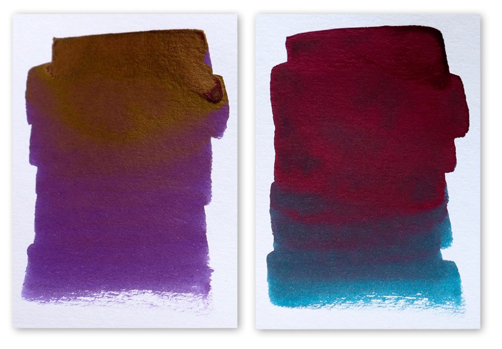 As with Maureen and Robert they are both creative inks and look great when blended together both as pure inks and water blended. The sheens, in my opinion, are not as pretty as Maureen and Robert but in a very strong light that Philip gold sheen does liven up a little.