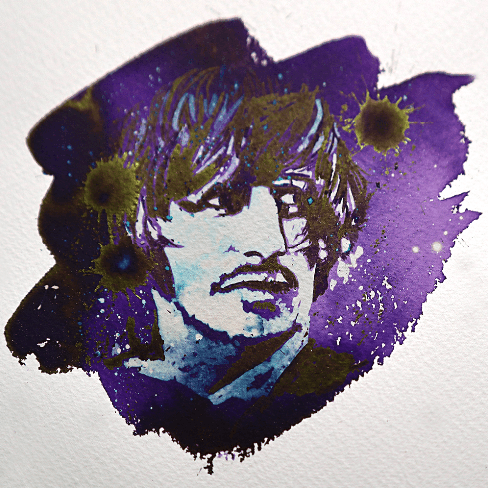 Ringo Starr – created with Diamine Winter Miracle and bleach on Bockingford 140lb rough watercolour paper. That sheen!