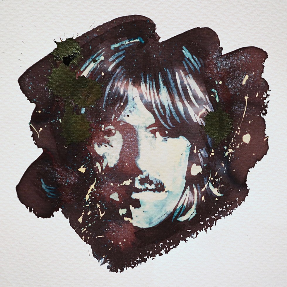 George Harrison – created with Diamine Earl Grey, Snow Storm and bleach with Lion Rock blots on Bockingford 140lb rough watercolour paper. Earl Grey is great ink to work with. Blends well with the Snow Storm.