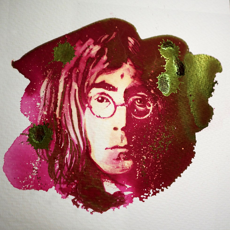 John Lennon – created with Diamine Cult Pens Robert and bleach on Bockingford 140lb rough watercolour paper. That sheen!