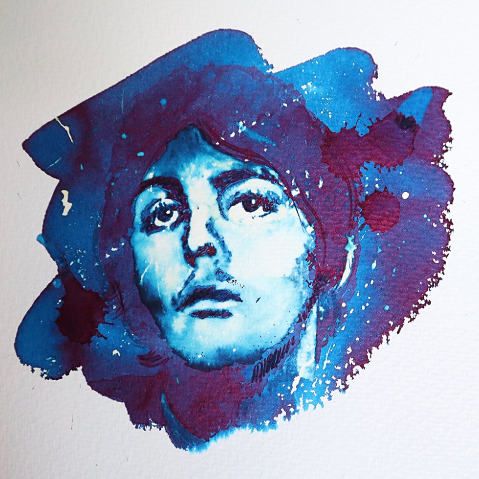 Paul McCartney – created with Diamine Polar Glow and bleach on Bockingford 140lb rough watercolour paper. Not an easy ink to paint with. You’ll need to do a couple of practice pieces first!