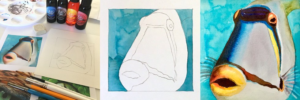 There is a definite Watercolour technique to what we are going to do and we start with the lightest coloured areas first and build the painting tonally from there. To make colours lighter, add more water.