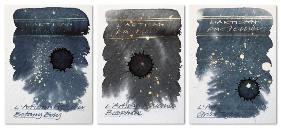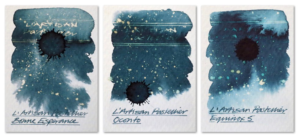 As handwriting inks, these are faultless. I used a Serendipity dip pen with a Noodlers flex nib – the flow was easy and the colours dried quick and even. What is noticeable with all of these these inks during the swatching process, is the very subtle chromatography. It’s there, for sure, but very low key. These aren’t vivid Diamine, Robert Oster or Sailor Ink Studio. In fact all of the inks appear somewhat dusty – they remind me of watercolour paints. Maybe I should have a go at painting with these and do a comparison?