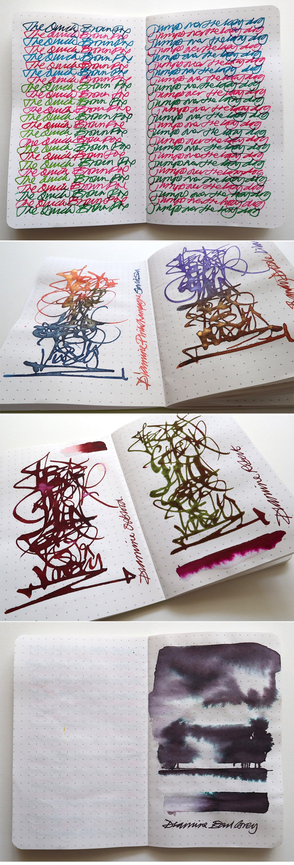The Made for Ink Pocket Junglist Special Edition has a 300gsm cover with 52 internal pages of a smooth white 100gsm paper stock. This particular pocketbook is staple stitched and has a dot matrix page layout which for me is too heavily printed. Performance wise – some of the heavier sheening and shimmer inks do bleed through the paper, creating show through. But in general, most inks work well and you will be able to achieve reasonable sheen and shimmer effects. For chromo effects and illustration this pocketbook also works – not brilliant but better than the Pebble. I already use Rhodia dot matrix for handwriting tests and this is very similar. For handwriting and note making this book is ideal with no show through and at £4.65 who’s complaining?