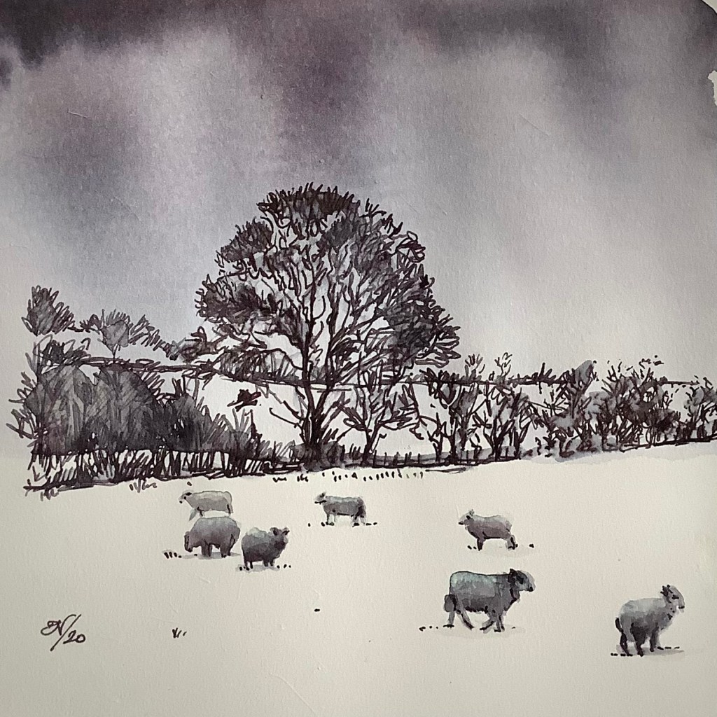 Created with Nick Stewart Twilight Black fountain pen ink in Rhodia Pen and Ink Wash book with watercolour brush and a Noodler’s Creaper pen.