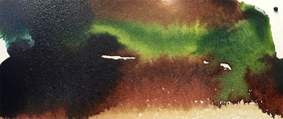 Several months passed when Phil Dart (Beaufort Ink) got in touch to say that they were relocating to Somerset and asked the question, could I create a painting using their inks as a reminder of their time spent in the Highlands? I explained that there was one colour missing for me to do that so he then sent me a yellow fountain ink that for one reason or another they never released. Click here to view earlier swatch tests.
