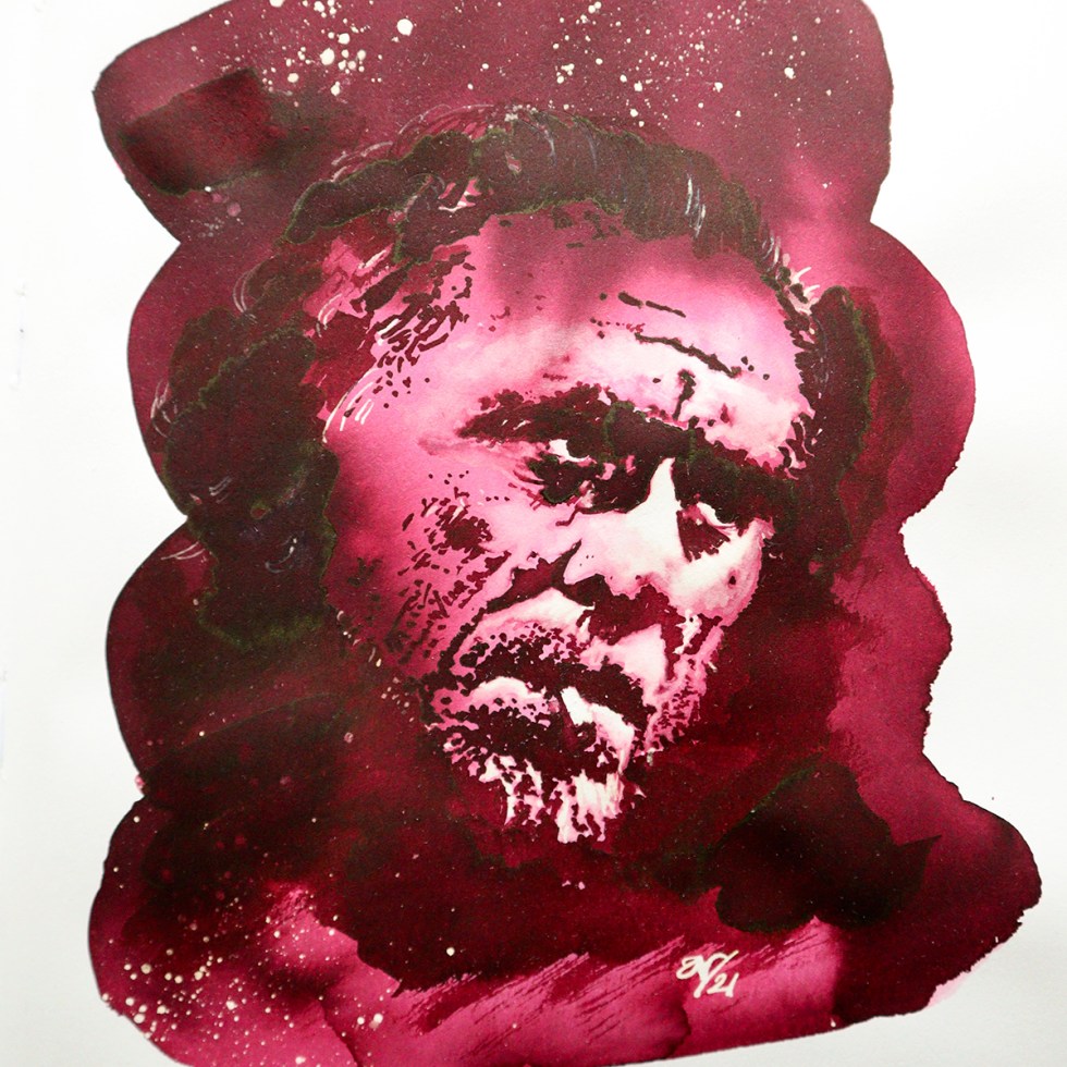 To that end I decided to paint a portrait of a well known writer, showcasing the amazing tonal range, subtle sheen and bleach reactions of this brand new ink. As an avid reader I had to think really hard about who I felt, really grasped the nettle and wrote about real life in a style that was shocking, refreshing, immediate, honest and of the moment. Someone who wasn’t scared of censorship or criticism, someone who embraced the freedom of expression, someone who was just going to write about their life and their thoughts and damn the consequences. For me, that writer is Charles Bukowski and Writer’s Blood is the perfect name for an ink with which to immortalise him and I think this ink has done him proud. Writer’s Blood has got attitude!