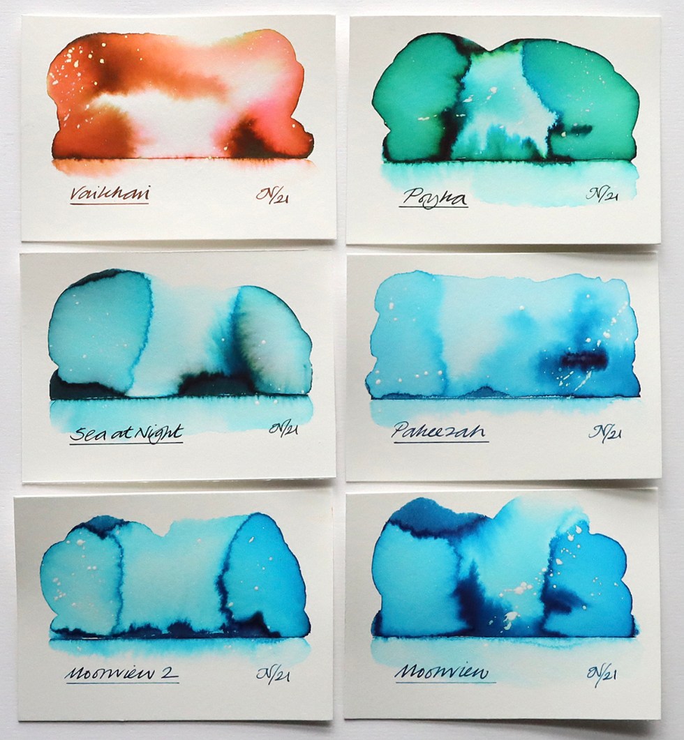 As mentioned in the previous post, Krishna inks are known for their monster sheens of which I have six more to show here.