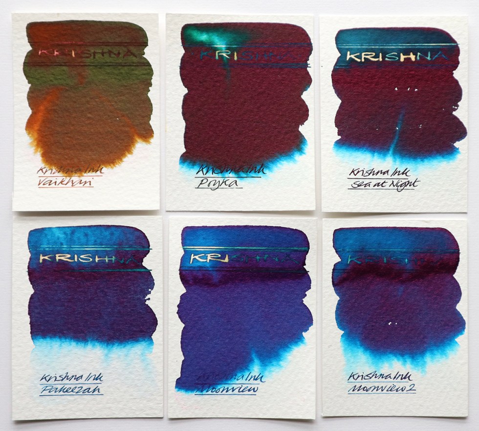 These Krishna fountain pen ink samples were very kindly sent to me by Anja at Papier & Stift, so a big thank you to her BUT, if you want to see the other Krishna Ink swatch test that I did a while back, click here. And if you want to check out the previous Krishna Monster Sheen tests click here.