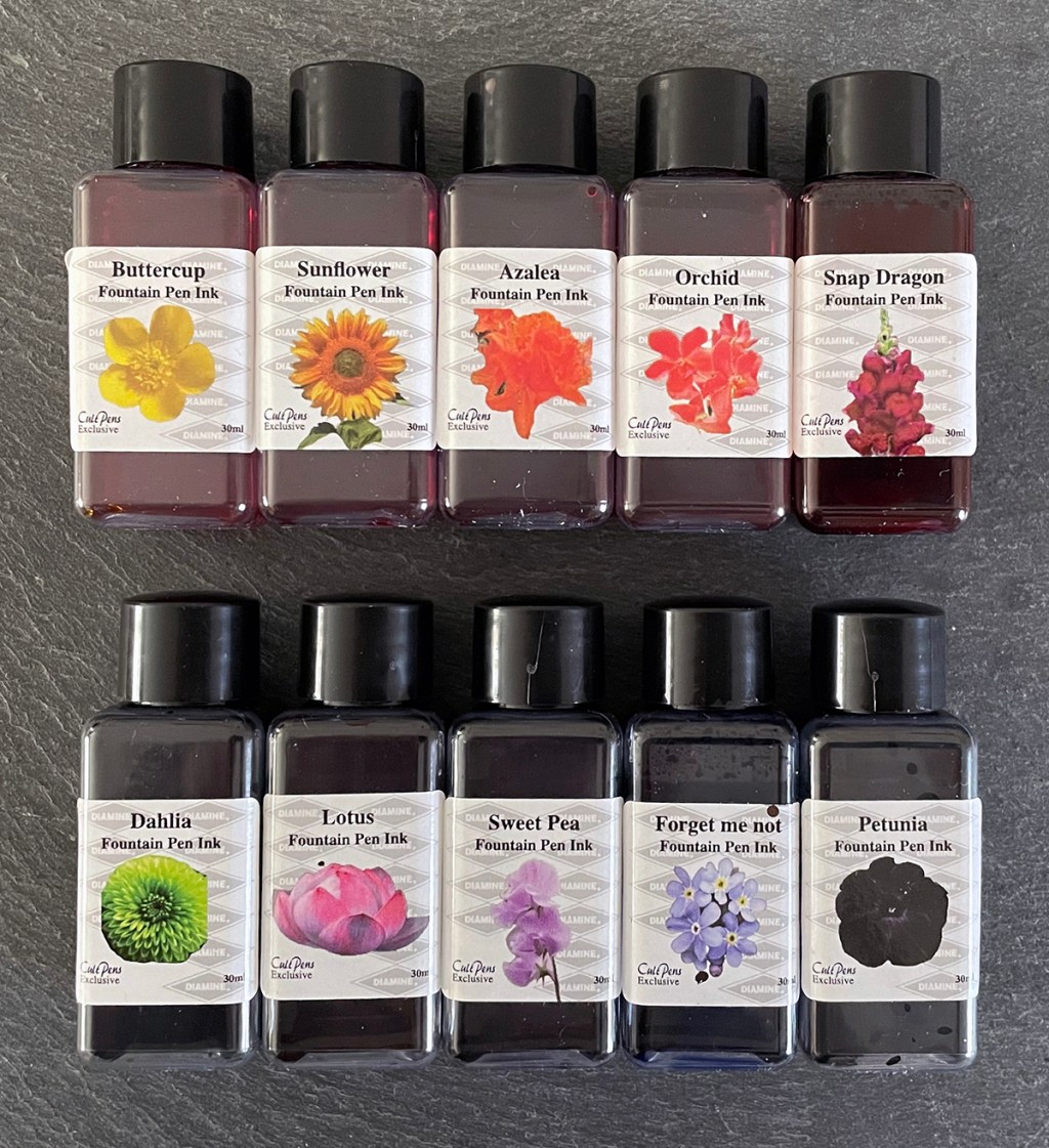 As part of the United Inkdom meta review group, I have been asked to swatch test the fairly new Cult Pens Diamine exclusive Flower Inks collection.
