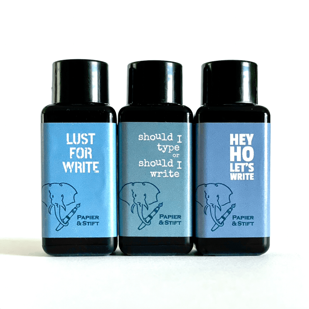 Anja at Papier & Stift has just released three brand new Diamine grey shading exclusives called: Lust For Write, Should I Type or Should I Write and Hey Ho Let’s Write. I think, homage maybe being paid to Iggy Pop, The Clash and Ramones.