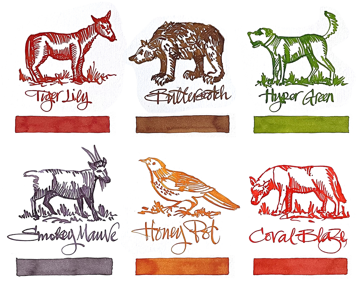 In the autumn of 2024, Phil at Diamine asked me if I’d like to test drive some of these new pigment inks. These are made with nano particle pigments. And this is where these inks become a game changer. Because the pigment particles are invisible to the naked eye, they are small enough not to dry in a pen feed and they are small enough to completely dry on paper without leaving a dust that can later smear when over washed.