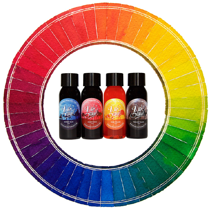 In 2018 I launched my four colour fountain pen ink mix set. For the three years previous to that I had been deconstructing fountain inks to see if I could reimagine them as something other than just a handwriting fluid for fountain pens. To see if it might be possible to help them defy the onslaught of digital visual software and find them a new purpose within the analogue traditions as a bone fide art medium.