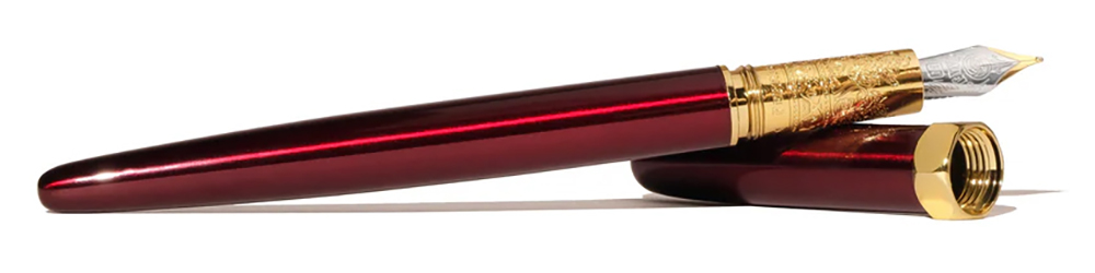The postable cap – also finished in that stunning crimson sapphire lacquer – comes with a double gold-plated hexagonal ring that prevents the pen from rolling.