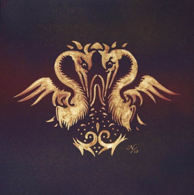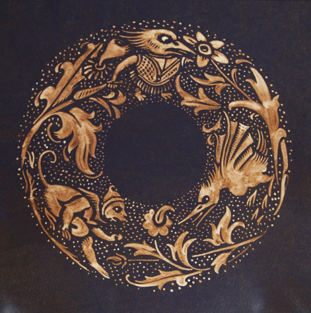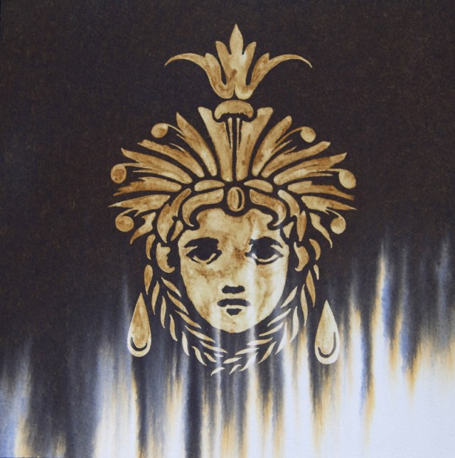 Quink black freeform blend onto 300gsm Saunders watercolour paper with bleach illustration. Signed and dated. Artwork size 300mm x 300mm. Mounted proud in black frame with matt black mount size 500mm x 500mm.