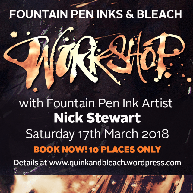 On Saturday 17th March 2018 I will be running 2 fountain pen inks and bleach workshops here at my studio in Rochester, Kent. What’s this all about? For the past 3 years I have been […]