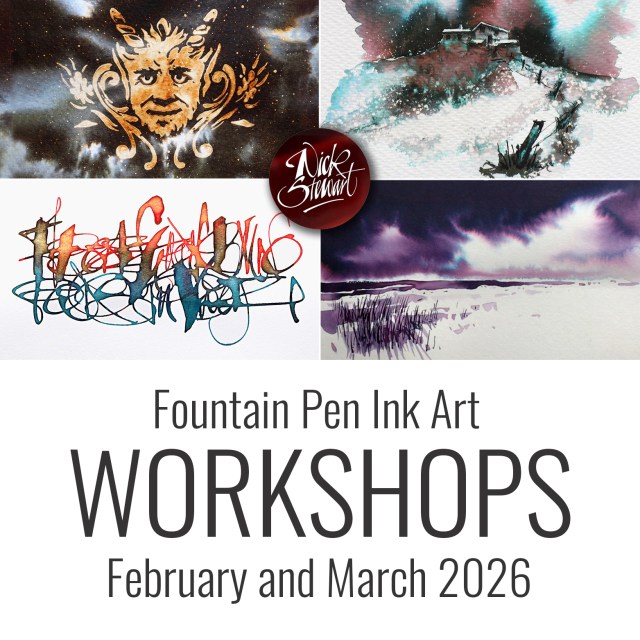 Fountain Pen Ink Art workshops are both fascinating and fun. I deliver these from my studio here in Rochester as well as on site for art groups, schools, organisations and businesses. WORKSHOPS 2026 – Delivered […]