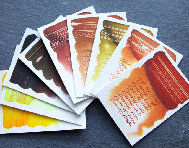 Here is my last batch of 9 bleach swatch tested Private Reserve inks in the blacks and greens range. Ebony Black – A rich black brown with hints of purple grey revealed when blended with water. A limited reaction with bleach in […]